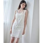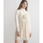 ワンピース 薔薇刺繍細見えレースアップミニワンピース