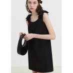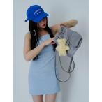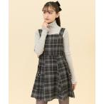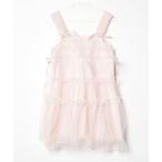 ワンピース 「ペチコート付き」肩リボンツイードミニキャミワンピース