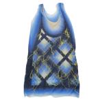 未使用 LOUIS VUITTON ルイヴィトン チュール ノースリーブ ワンピース チュニック ショート丈 チェック 36 ブルー グラデーション レディース 古着 中古