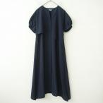 【美品】オアーノ O wau no *パフスリーブシャツワンピース*RLネイビー半袖無地ショートスリーブ(33-2509-452)【61J52】
