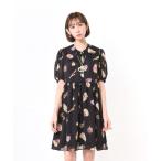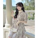 ワンピース ゴブラン風プリントパフスリーブミニワンピース
