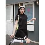 【50%OFF】ワンピース 半袖 サイドライン ワンポイント ロゴ ミニ ショート丈 タイト セクシー シンプル カジュアル スポーティー 韓国 S M L JOCOSA 8836