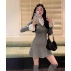 ワンピース ダブルカラーレイヤード風ミニワンピース