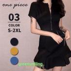 ミニワンピース 半袖 フレア ワンピース ミニ ショート丈 夏ワンピ レディース 春 夏 ジップアップ きれいめ タイト 大人可愛い おしゃれ かわいい カジュアル