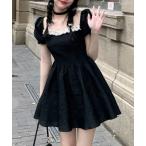 ワンピース フリルスクエアネック バックリボンミニワンピース