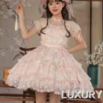 華ロリ 中華ロリ ワンピース のみ 花柄 お花 ミニ丈 ショート丈 膝上 半袖 立ち襟 ハイネック シフォン アジアン 中国風 チャイナ フェミニン 華やか 夏コーデ 撮影用 イベント