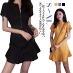 ワンピース ミニワンピース 半袖 フレア ワンピース ミニ ショート丈 夏ワンピ レディース 春 夏 ジップアップ きれいめ タイト 大人可愛