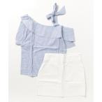 ワンピース ストライプ柄ワンショルダーブラウスミニスカートセットアップ