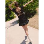 ワンピース バックオープンリボンフレアミニワンピース