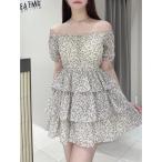ワンピース ミニフラワープリントオフショルワンピース