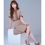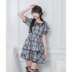 ワンピース デコルテリボン配色チェックワンピース