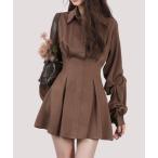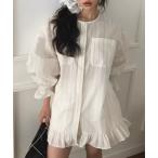ワンピース ビジュー襟フリルギャザーシャツワンピース