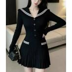 ワンピース 配色セーラー風タイトミニワンピース
