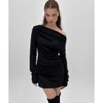 ワンピース ドレープアクセント タイトフィットワンピース