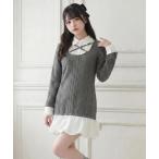 ワンピース レース装飾シャツドッキングバルーンワンピース