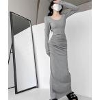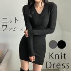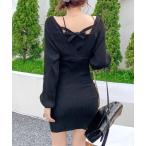 ワンピース アンサンブル風リブニットワンピース バックリボン