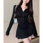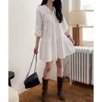 ワンピース 前ボタンデザイン プレーンミニワンピース