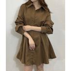 ワンピース 「ミニ丈/袖口ゴム」ぽわんと可愛いシルエット。ウエスト切り替え ヘンリーネック ピンタック ワンピース レディース