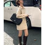 ワンピース シャギー パール ベルト付 ミニ ニット ワンピース