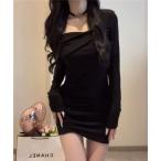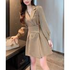 ワンピース レイヤード風 カラー付 ドレープミニワンピース