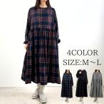 ネル ウエスト切替 長袖 ギャザー ワンピース ショート丈 チェック シャツワンピース フランネル ロング レディース ゆったり [M便 不可]