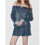 ワンピース 長袖セパレート風ショート丈デニムワンピース レディース
