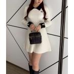ワンピース オフショル風スクエアネックミニニットワンピ