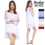 送料無料 ワンピース 長袖 アームスリット Vネック ショート丈 ミニ丈 レディース チュニック Aライン ルーズ ゆったりめ 体型カバー 春夏 セクシー SEXY おしゃれ きれいめ シンプル 無地 単色 ソリッドカラー 女性用 婦人用 S M L XL