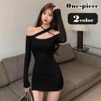 ワンピース カジュアルドレス レディース 女性 ミニ丈 ミニスカート ショート丈 膝上丈 長袖 ホルターネック オフショルダー タイト 無地 ブラック