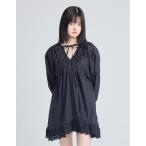 【全品50%OFF!13日まで】ワンピース リネン100% 裾フリル ティアード 前開き 長袖 フリーサイズ ブラック 黒 40代 50代 60代 入園・入学式 卒園・卒業式 服 母 ママ ナチュラル きゃらファッションオリジナル