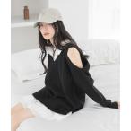 ワンピース オフショル風スクエアネックミニニットワンピ