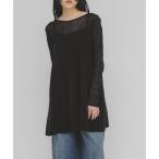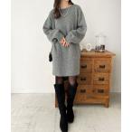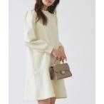 ワンピース ボリュームスリーブボートネックミニ丈ミックスニットワンピース