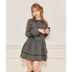 ワンピース 「ペチコート付き」肩リボンツイードミニキャミワンピース