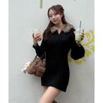 ワンピース オフショル風スクエアネックミニニットワンピ