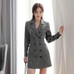 ミニワンピース 長袖 テーラード トレンチ風ワンピース フォーマル 通勤 OL グレー ショート丈ワンピース 襟付き Vネック 前開き