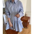 シャツワンピース スキッパー長袖シャツワンピース