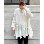 ワンピース ラッフルフリルネルチュニックシャツワンピース