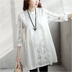 チュニックワンピース 通販チュニックワンピース チュニック ワンピース 七分袖 ブラウス レディース 薄手 レース 袖 刺繍 透け感 韓国 チュニックワンピース