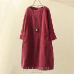 チュニック ワンピース 春秋 冬 膝丈 レディース チュニックワンピース クルーネック 森ガール ロングワンピース ひざ下丈ワンピース ひざ丈 長そで ロング 無地