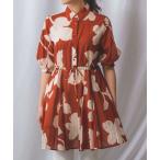 mash mania アクトレッソ チュニックワンピース はなふぶき【web限定 送料無料】/レディース 日本製 柄 Vネック フレンチスリーブ チュニック イエロー ベージュ マッシュマニア