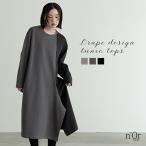 ワンピース ダンボール チュニック レディース トップス ロング スウェット プルオーバー シワになりにくい 無地 長袖 ワンピ クルーネック リブ レイヤード