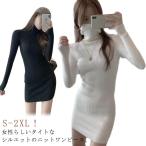 ニットワンピース ワンピース ニット レディース チュニック 長袖 タイト 無地 リブ トップス 膝丈 秋冬 ニットソー ロングワンピース 秋冬ワンピ