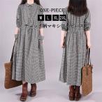 【大特価】ワンピース シャツワンピース ロングワンピース チュニック 秋 レディース チェック柄 マキシ丈 長袖 体型カバー 綿麻 ゆったり 大きいサイズ 夏