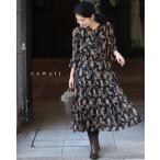Sから2L対応 上品なバンダナ柄プリントミディアムワンピース 紐ベルト付き