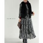 ワンピース 泡のような円が浮かぶ異素材合わせミディアムワンピース