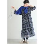 ワンピース 揺らめくように連なる花のシフォンミディアムワンピース