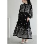 ワンピース 庭園の風景を描いたトワルドジュイ柄ミディアムワンピース