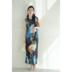 ワンピース 着心地ラクなアートワークプリーツミディアムワンピース
