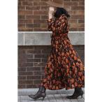 ワンピース 灯色の花が広がるティアードミディアムワンピース(紐ベルト付き)