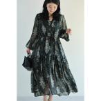 ワンピース 降り注ぐエレガントな華装飾ミディアムワンピース